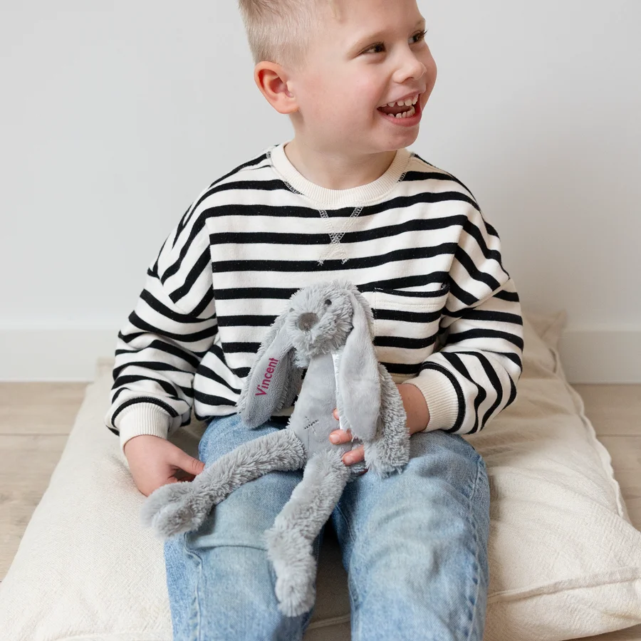 Dit zachte knuffelkonijn is perfect voor iedere baby. Met naam wordt de knuffel nog persoonlijker. Een leuk cadeau dat tijdloos is en de baby gelijk een beste vriend geeft!